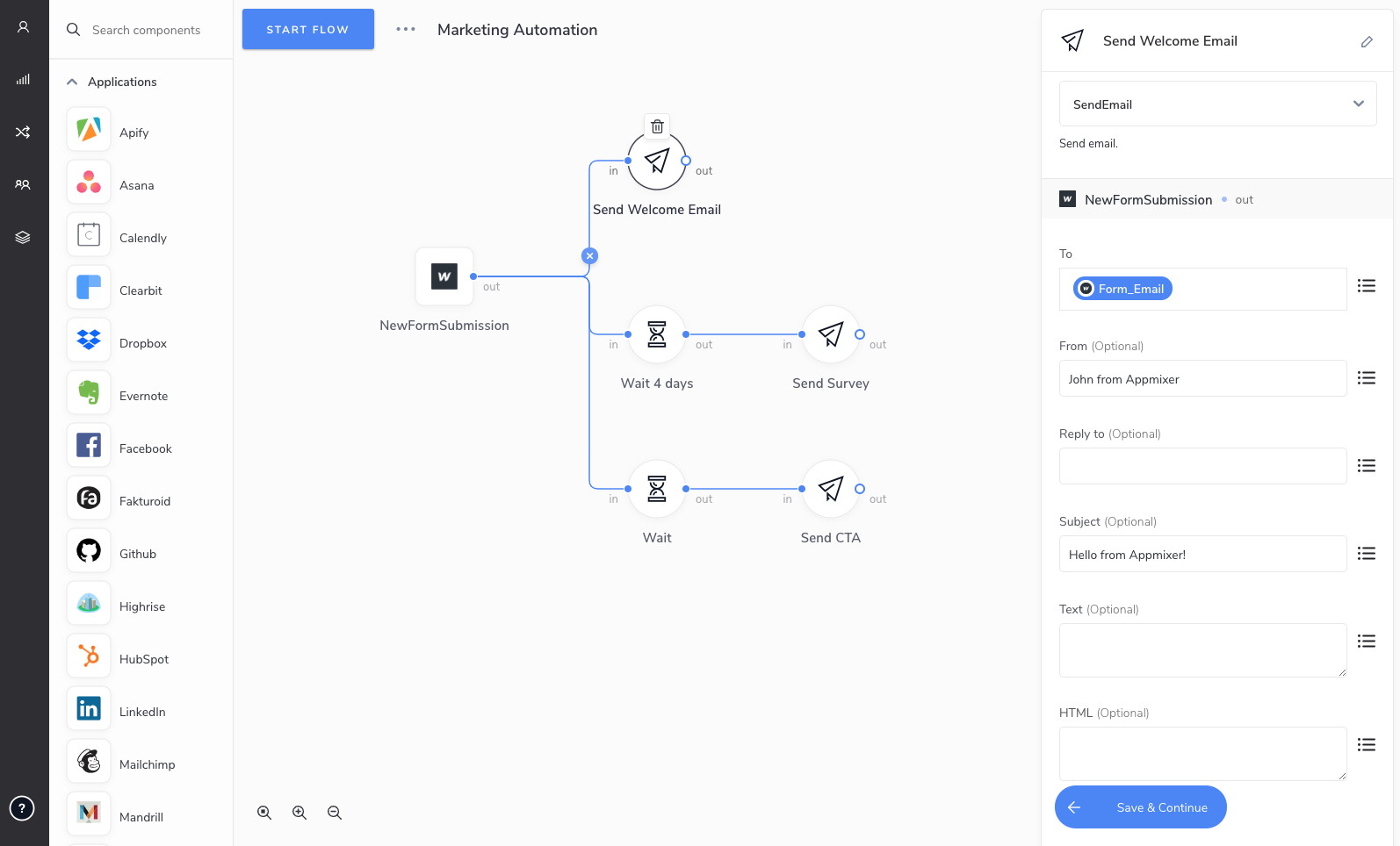 Appmixer makes it easy to connect and integrate your apps with third-party APIs.